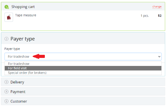 Select from the dropdown the purpose of your order: trade shows, field visits or broker special order. Fill out all requested fields.